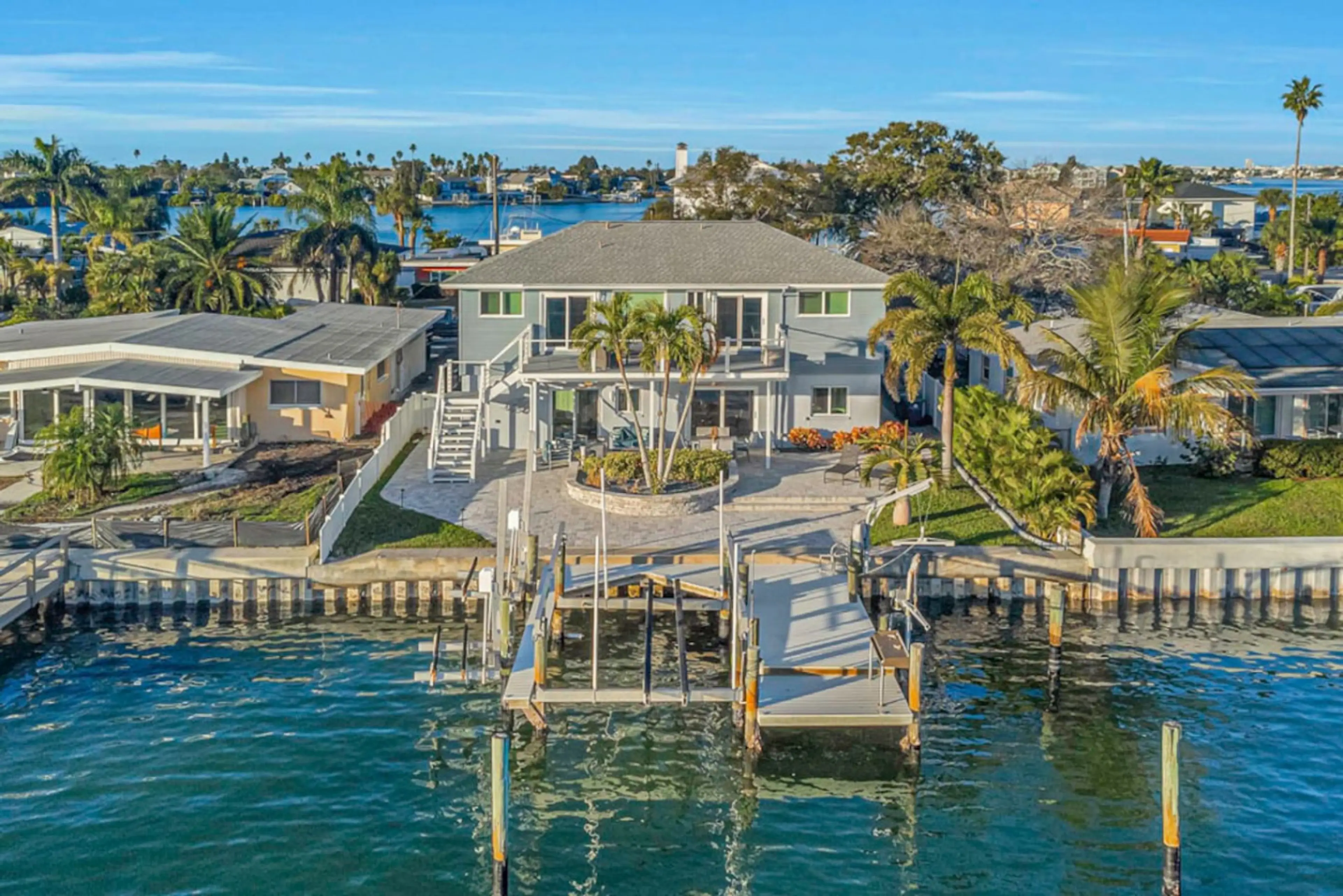 Welcome to Villa Azule, your luxurious Indian Rocks Beach retreat! - Spacious 2,646-square-foot waterfront haven with stunning canal views. - Two king master bedrooms and a queen bedroom, accommodating up to 10 guests. - Outdoor amenities include a boat lift, propane grill, fire pit, bikes, an...